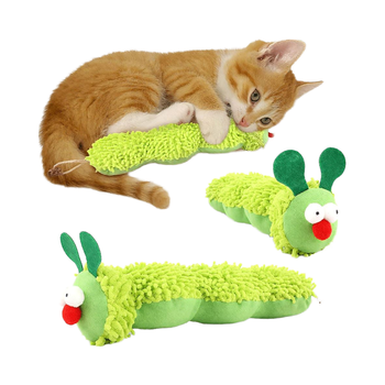 Caterpillar Design Eco-Friendly Catnip Chew Toy Green Plush Dental Health Benefit Bite-Resistant Teeth for Indoor Cats and Dogs